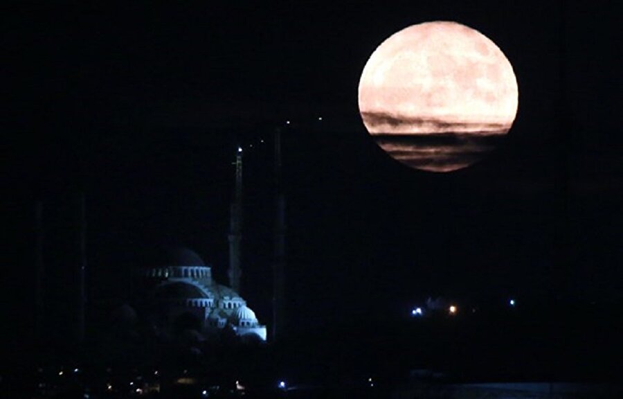 Türkiye'de Güneş'in batmasıyla birlikte Süper Ay, havanın bulutlu olmadığı kentlerde çıplak gözle net bir şekilde izlenebildi.Ay'ın Dünya'ya en yakın olduğu zaman beliren Süper Ay, normal görünümünden yüzde 30 daha parlak ve çok daha büyük göründü. Bu eşsiz gökyüzü şölenini kaçırdıysanız 18 yıl beklemek zorunda kalacaksınız; çünkü Süper Ay bir daha 2034 yılında görünecek. Bu tarihe kadar Ay gezegenimize bir daha bu kadar yakın bir noktaya gelmeyecek. İşte İstanbul'dan Süper Ay görüntüleri!
