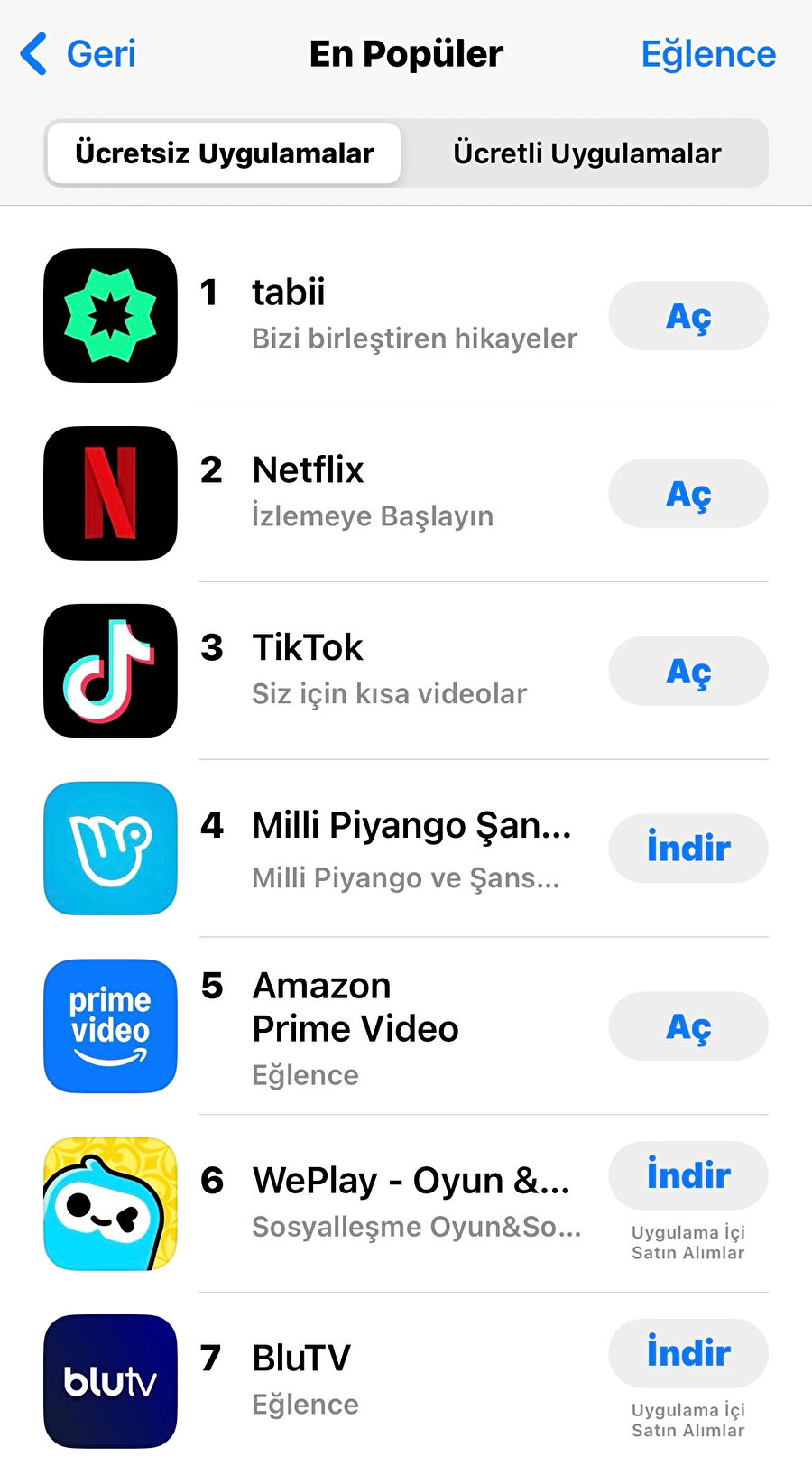 Kısa sürede yüksek izlenme oranlarına ulaşan Gassal dizisi sonrası Tabii, Appstore’da tüm dijital yayın platformlarını geride bırakarak zirveye oturdu.