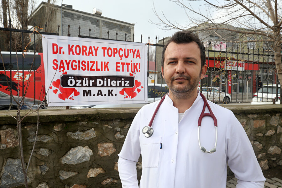 Olayın ardından yaptığından pişman olan hasta ve yakını, bir gün sonra merkeze giderek Topçu'dan özür diledi, Toplum Sağlık Merkezi'nin bahçe duvarındaki korkuluklara da "Dr. Koray Topçu'ya saygısızlık ettik, özür dileriz" yazılı pankart astı.