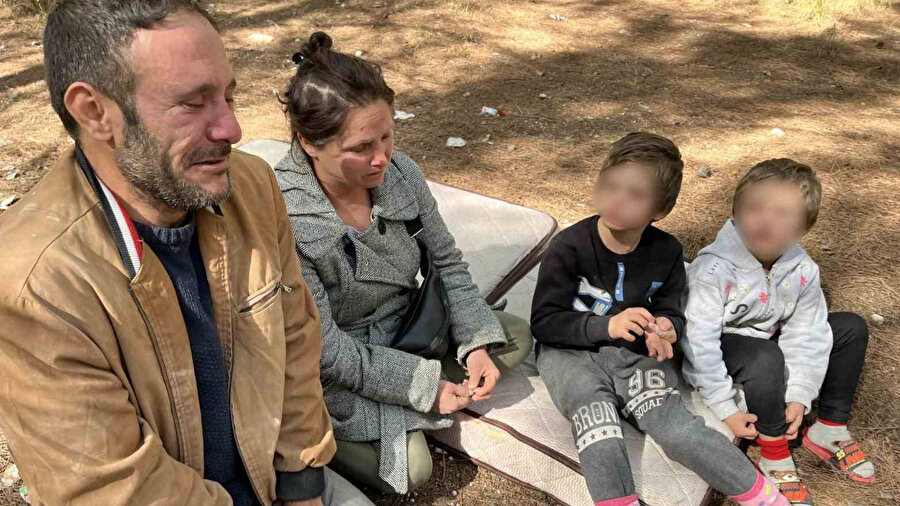 - "Ben çalışan bir insanım. Ev sahibimin iki parça eşyası kayboldu diye hırsız muamelesi gördük, dışarı atıldık. 2-3 gündür eşimle, çocuklarımla ormanda kalıyorum. Şu an zor durumdayım. Sahip çıkanımız yok, kimsemiz yok. Anlatacak çok şey var ama konuşamıyorum, kelimeler boğazımda düğüm düğüm oluyor" dedi. Avcı, geceleri çocuklarını korumak için sabaha kadar uyumadığını belirterek, "Domuzu var, köpeği var, çakalı var. Üç gündür uyku uyumadım. Çocuklarım korkmasın diye bekçilik yapıyorum. Çocuklarım biri 7, diğeri 4 yaşında, ikisi de kız. Eşim zaten hasta. Bir döşeğin üzerinde yaşıyoruz. Geceleri ayazda titriyorlar"