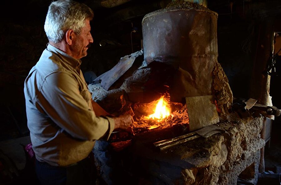 Bitlis'in Hizan ilçesine bağlı 15 haneli terk edilmiş Tağ köyünde 25 yıldır tek başına yaşayan Hikmet Arıcı, köyde demircilik yaparak çevre köylerden gelen balta, kazma, kürek siparişleriyle geçimini sağlıyor.