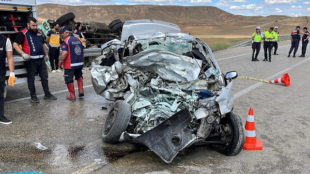 Yozgat'ın Yerköy ilçesinde ters yönde giden otomobil ile kamyonun kafa kafaya çarpıştığı kazada 3 kişi hayatını kaybetti, 2 kişi yaralandı.