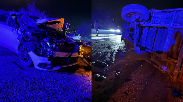 Çarpmanın şiddetiyle her iki araçta da maddi hasar oluşurken, araç içindekiler savruldu. Feci kazada traktör sürücüsü D.A. ve otomobil sürücüsü M.Ş. ile otomobilde yolcu olarak bulunan G.Ş. (36) ve 16 yaşındaki M.Ş. yaralandı. Kazayı gören diğer sürücülerin ihbarı üzerine olay yerine ivedilikle sağlık ekipleri yönlendirildi.