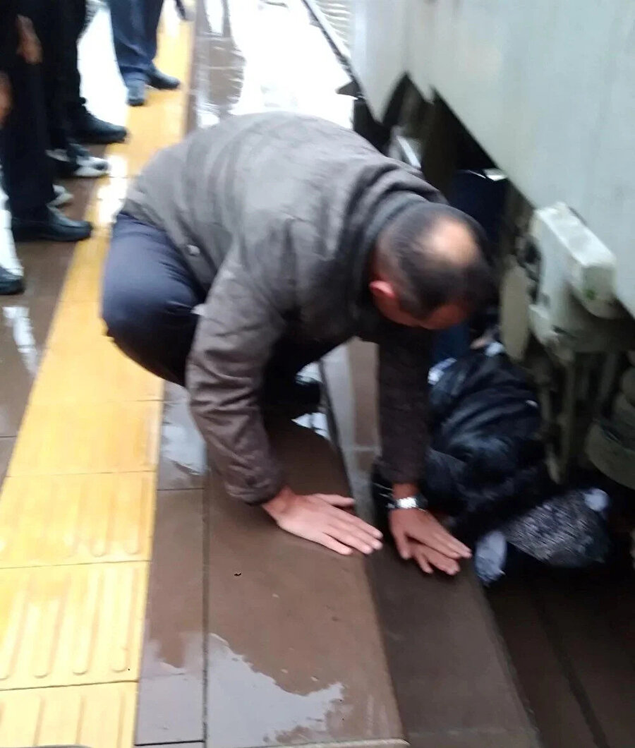 Trenle peronun arasına sıkıştı: Makinistin dikkati hayatını kurtardı