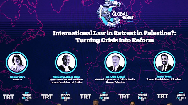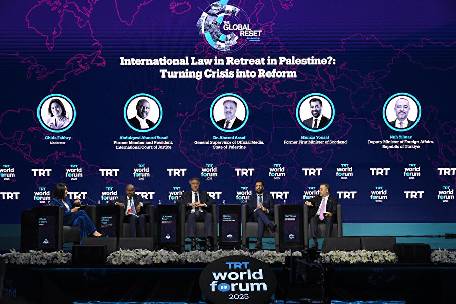 Bu yıl 9’uncusu düzenlenen TRT World Forum 2025’in ikinci gün panelleri devam ediyor. Dünyanın önemli sorunlarının masaya yatırıldığı forumun ikinci gününde gerçekleşen “Filistin Meselesinde Uluslararası Hukuk İnzivada mı?: Krizi Reforma Dönüştürmek” paneline İskoçya Krallığı Eski Başbakanı Humza Yousaf, Eski Uluslararası Adalet Divanı Yargıcı Abdulqawi Yusuf, Filistin Devleti Resmi Medya Genel Denetçisi Dr. Ahmed Assaf ve Dışişleri Bakan Yardımcısı Dr.Nuh Yılmaz katıldı. Panelde, başta Gazze’deki soykırım olmak üzere, yakın dönemdeki krizlerin çözümünde mevcut uluslararası hukuk mekanizmalarının yetersizliği ve çözüm önerileri tartışıldı.