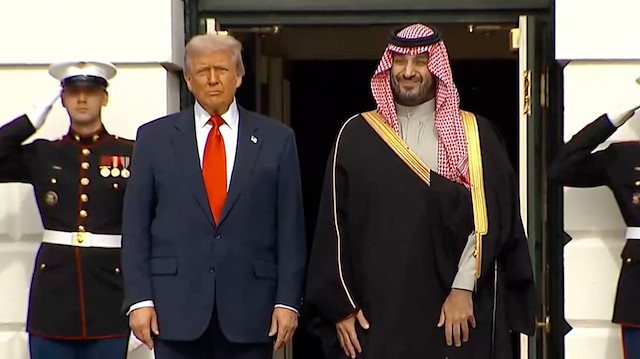 ABD Başkanı Trump, Beyaz Saray'da kapsamlı bir tören düzenlediği Suudi Veliaht Prens MBS'yi kapıda karşılarken ikili, Oval Ofis'e geçmeden önce Beyaz Saray'ın bahçesinde kısa süre sohbet etti.