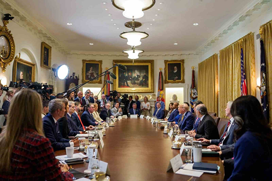 Kabine toplantısının başında, Teksas’ta yaşanan sel felaketiyle ilgili konuşan Trump, "Çocuklarını çamurdan ve kulübelerin enkazından toplayan anne babaları gördüm. Federal Acil Durum Yönetim Ajansı’nı (FEMA) hemen devreye soktuk, sahil güvenlik yüzlerce can kurtardı. Orada 9 metre yüksekliğinde bir su duvarı vardı" şeklinde konuştu.