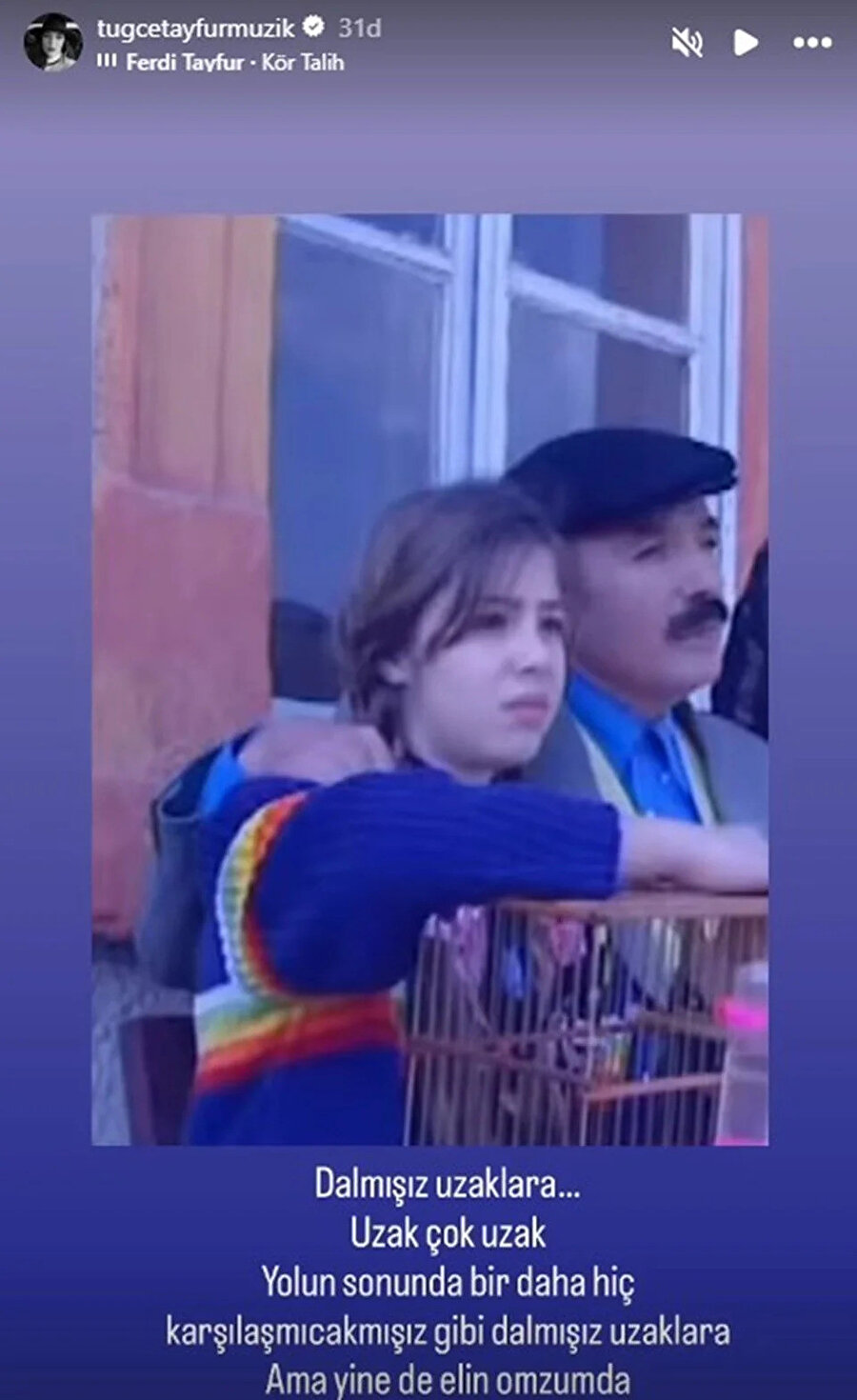 "Dalmışız uzaklara... Uzak çok uzak. Yolunda sonunda bir daha hiç karşılaşmayacakmışız gibi dalmışız uzaklara. Ama yine de elin omzumda."