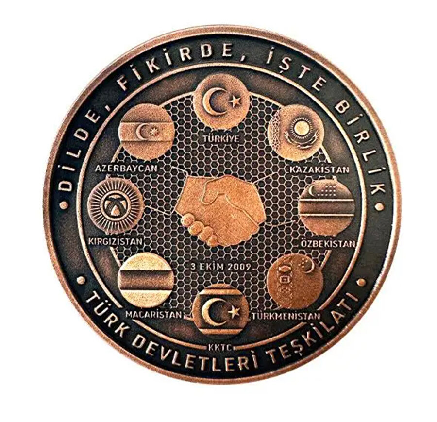 Cumhurbaşkanı Recep Tayyip Erdoğan, Türk dünyasının yetiştirdiği büyük fikir adamı İsmail Gaspıralı'nın "dilde, fikirde, işte birlik" şiarına yer verilen hatıra parayı liderlere takdim etti.