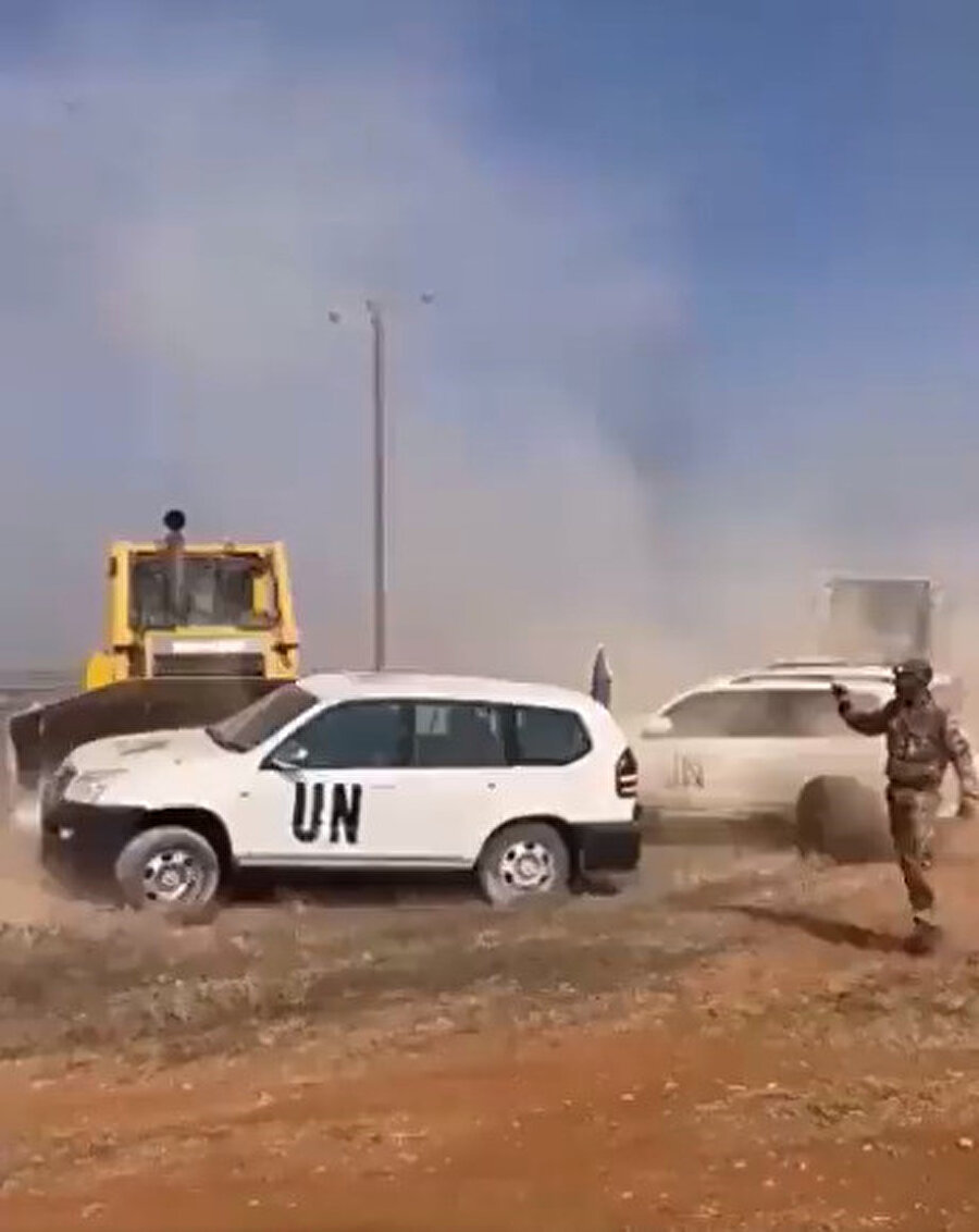 Türk tarafının yetkililerini ve yol yapım araçlarını engellemek isteyen BM Barış Gücü askerleri, ayrıca araçlarını KKTC topraklarına park etmişti.