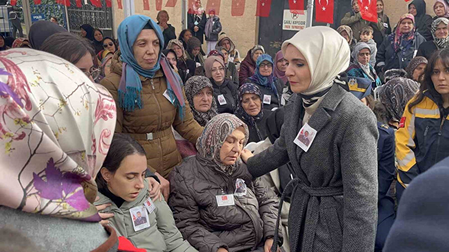 Şehit Üsteğmen Emre Mercan’ın annesi Ayşe Mercan, babası Halil İbrahim Mercan ve eşi Esra Mercan’nın cenaze namazında ayakta durmakta güçlük çektiği görüldü.