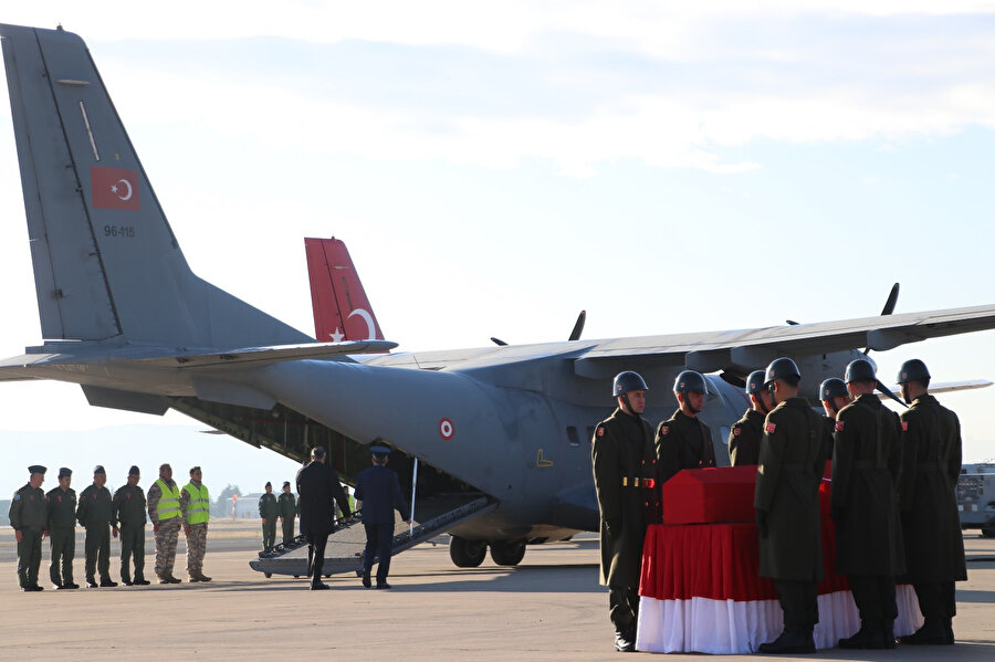 Türk Silahlı Kuvvetlerine (TSK) ait "A400M" askeri kargo uçağı, askerlerin naaşını dün Tiflis'ten Türkiye'ye getirdi.
