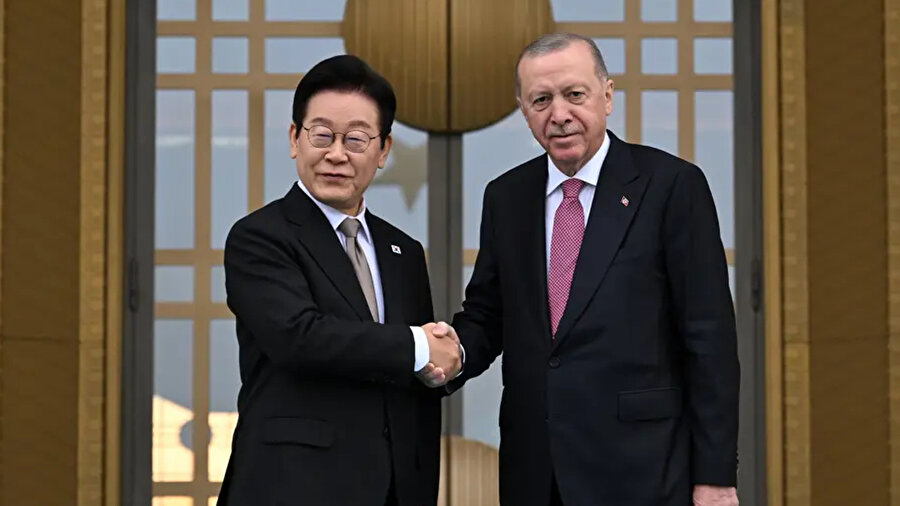 Cumhurbaşkanı Recep Tayyip Erdoğan, Türkiye'yi ziyaret eden Güney Kore Devlet Başkanı Lee Jae Myung'u resmi törenle karşıladı. Lee'nin makam aracını, Cumhurbaşkanlığı Külliyesi önündeki caddede karşılayan süvariler, araca protokol kapısına kadar eşlik etti.