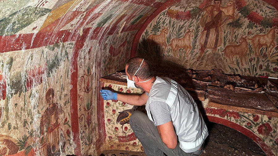 Fresk, 3. yüzyıla tarihleniyor ve zengin süslemeli bir mezar odasının kuzey duvarında bulunuyor. Eser, Anadolu’da bulunan türünün en iyi korunmuş örneği olarak kabul ediliyor.