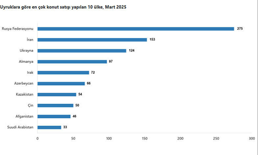 Yabancılara konutta zirvenin Araplarda olduğunu düşünüyorsanız yanılıyorsunuz. Ancak böyle düşünmeniz oldukça normal. Çünkü geçen yıllarda en çok satışın Araplara gerçekleştiği biliniyordu. Ancak Mart 2025’te sıralama değişti. Mart’ta en çok konut alan yabancılar sıralamasında Rusya ilk sırada yer aldı. İran ikinci sırada kendisine yer bulurken Ukrayna üçüncü sıraya oturdu.