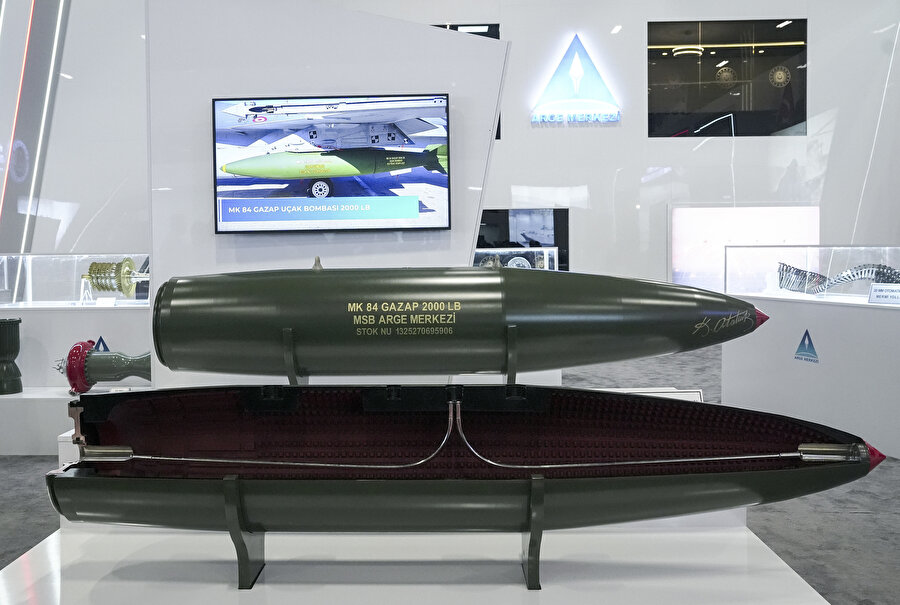 İDEF 2025’te tanıtılan bir diğer kritik sistem GAZAP bombası oldu. 970 kilogram ağırlığındaki bu mühimmat, derine nüfuz ettikten sonra infilak ederek termobarik basınç dalgası yaratıyor. Mağara sistemleri ve yer altı koruganlarını imha edebilecek kapasitede olan GAZAP, lazer güdüm ve değişken zamanlayıcılarla farklı görev profillerine uyarlanabiliyor. F-16, F-4, Bayraktar AKINCI ve 2028’de devreye girecek KAAN’dan atılabilecek şekilde tasarlandı.