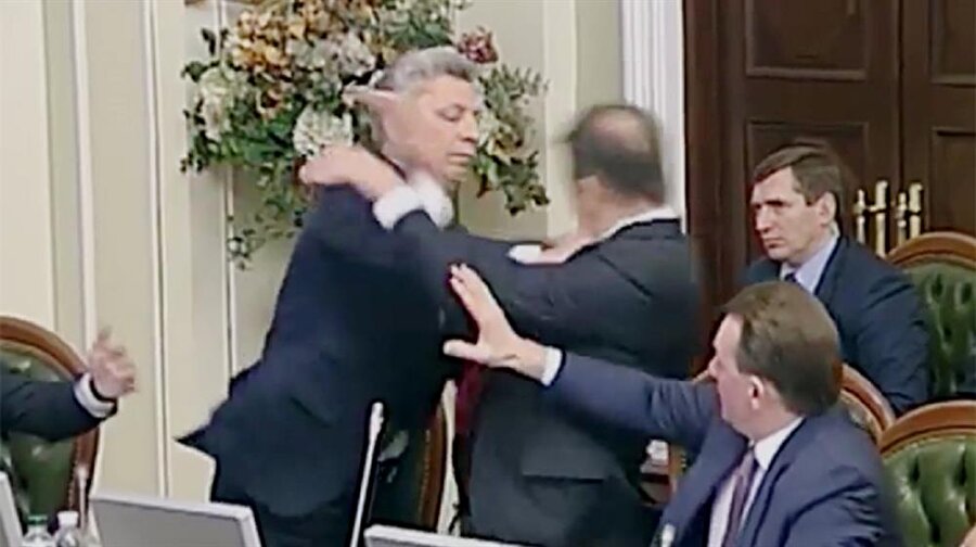 Ukrayna parlamentosunun Uzlaştırma Kurulu'nda yapılan toplantıda, eski Başbakan Yardımcısı Yuriy Boyko kendisini 'Kremlin ajanı' olmakla suçlayan Radikal Parti'den Oleg Lyashko'ya yumruk attı.