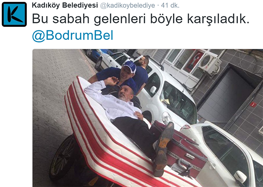 Bodrum Belediyesi'nin bu tweet'ine yanıt gecikmedi. Kadıköy Belediyesi bu tweet'e yanıt olarak ilginç bir fotoğraf kullandı ve üstüne 'Bu sabah gelenleri böyle karşıladık' diye yazdı.