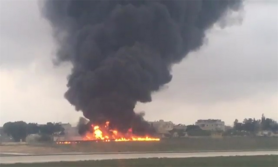 Malta'dan kalkan ve içinde Avrupa Birliği (AB) yetkilileri olduğu belirtilen bir uçak düştü. Alev alan uçaktaki 5 kişiden kurtulan olmadı.