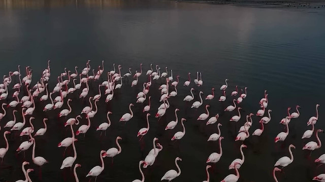 Van'da flamingoların oluşturduğu görsel şölen hayran bıraktı