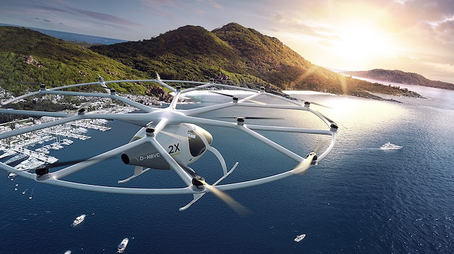 Volocopter'in uçan hava taksisi, şehir içi ilk resmî uçuşunu 14 Eylül'de Almanya'nın Stuttgart kentindeki Mercedes-Benz Müzesi'nde yaptı.