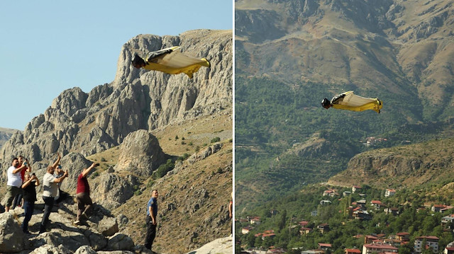 - “Türkiye'de wingsuit sporu genelde yarasa adam olarak biliniyor. Yarasa adam olarak da tanınıyorum. 2011 yılında uçaklardan atlayıştan sonra ilk base jump atlayışımı ben burada Karanlık Kanyon’un içinde yaptım. O günden beri 14 yıldır her sene gelir giderim. Kemaliye'ye gelmediğim bir yıl benim için yaşanmış sayılmaz. Dünyada şu ana kadar 56 ülke dolaştım. Çok yer gördüm ama bana deseler ki; bir ülkede, bir şehirde, bir ilçede nerede yaşarsın, nerede kalırsın. Neresi en çok seni sahiplendi? Kemaliye. O yüzden burada yaptığım atlayışlardan dolayı bana Kemaliye'nin eski ismi olan 'Eğin Kuşu' ismi verildi. Bir Eğin Kuşu olarak burada olmaktan çok mutluyum. Bu sabah çok güzel bir atlayış oldu. Daha önce açtığımız bir atlayış noktası vardı. Atlayış noktasının adı Cennete Açılan Kapı. Eğin’in de anlamı cennet bahçesi demek. Tam böyle cennet bahçesine bakan Cennete Açılan Kapı’dan wingsuit ile atlayış yaparak yaklaşık 180-220 kilometre arası süratlere ulaşıp Kemaliye halkının üzerinden geçip paraşütümü açıp Fırat Nehri’nin serin sularına çok güzel bir iniş yaptım.”
