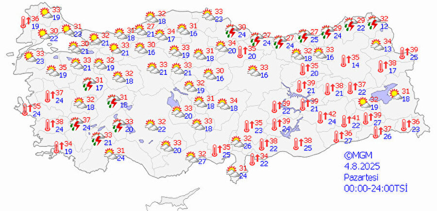 Bugün, Ege’nin doğusu, Batı Akdeniz’in iç kesimleri, Toroslar, İç Anadolu’nun kuzeybatısı, Karadeniz’in kıyı bölgeleri ve Çorum çevrelerinde yerel sağanaklar bekleniyor. Ancak çarşamba günü itibarıyla sıcaklıklar yurt genelinde artış gösterecek.