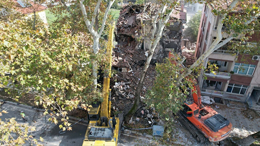 Yıkım çalışmaları sürüyor: Sındırgı'da depremden sonra 9 ağır hasarlı bina kontrollü şekilde yıkıldı