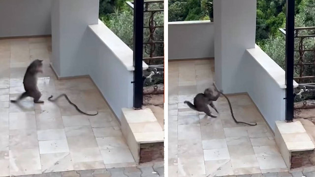 Öte yandan bir süre devam eden mücadelede yılan, apartman girişine yönelerek kapı korkuluklarına tırmandı. Kedinin peşini bırakmadığı yılan, daha sonra bina girişinden ayrılarak bahçedeki yeşil alana kaçtı. Kedi ve yılan bir süre sonra gözden kaybolurken, çevredeki vatandaşların yaşananları cep telefonu kamerasıyla kaydettiği görüldü. Görüntülerde kedinin yılanı dikkatle takip ettiği, zaman zaman patiyle hamle yaptığı anlar yer aldı.