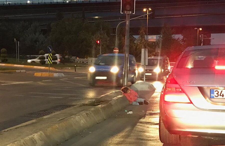 Fotoğrafı Twitter adresinden paylaştı ve altına şu ifadeleri yazdı: "Her sabah Topkapı'ya dönerken kavşakta gördüğüm Suriyeli çocukları görüyorum. Bugün ise yol kenarında uyuyan bu küçük çocuk şoke etti ben."