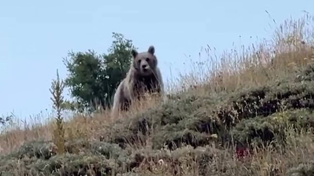 Erzurum’un Aziziye ilçesi Aşağı Akyazı köyünde hayvanlarını otlatan Soner Kaplan, bir anda ayı ile karşılaştı. Çoban, hayretinin ardından bir yandan elindeki cep telefonu ile ayıyı görüntülerken bir yandan da bağırarak onu korkutup kaçırmaya çalıştı. Ayı bir süre çobana baktıktan sonra kaçarak izini kaybettirdi.