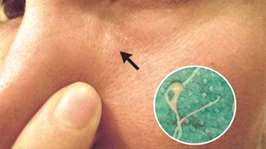 Yüzünün farklı yerlerinde çıkan şişliklerden rahatsız olup doktora giden Rus kadının cildinin altından parazit kurt çıktı.