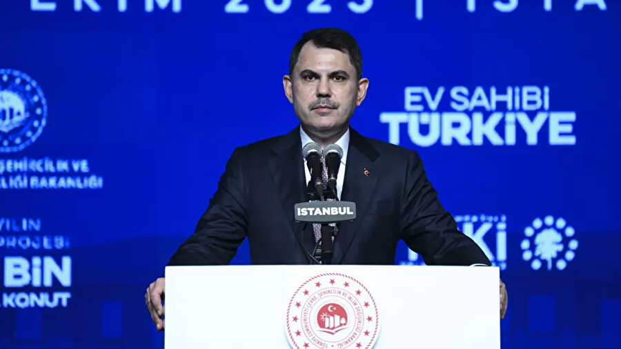 Erdoğan'ın katılımıyla Başakşehir'de "Yüzyılın Konut Projesi"ne ilişkin düzenlenen programda konuşan Çevre Şehircilik ve İklim Değişikliği Bakanı Murat Kurum, "Bugün biz bu alanda konuşurken 81 ilimizde kentsel dönüşüm projelerimiz hız kesmeden devam ediyor. Deprem bölgesindeki 200 bin emekçi, işçi kardeşimiz saatte 23 evi teslim ediyor. Depremzede kardeşlerimiz 'bir dakika daha evlerine erken girsin' diye 453 bin konutu yıl sonuna yetiştiriyoruz." dedi.