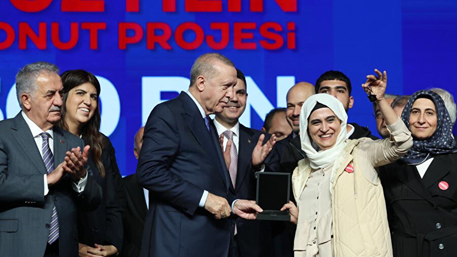 - Depremzede kardeşlerimiz, 'bir dakika daha evlerine erken girsin' diye 453 bin konutu yıl sonuna yetiştiriyoruz. İzmir'de, Balıkesir'de ve Bilecik'te afet konutlarımız yükseliyor. Hedeflenen konut sayısıyla Yüzyılın Konut Projesi'ni, 500 bin sosyal konut hamlesini hayata geçiriyoruz. 2 milyon vatandaşımızı güvenli, dayanıklı yuvalara kavuşturuyoruz. Ayrıca İstanbul'da ilk kez hayata geçireceğimiz 15 bin kiralık konut uygulamasıyla yeni bir dönemi başlatıyoruz. Bugün burada sadece binaların değil, geleceği inşa eden bir devletin kalbini, yine devletine güven dolu bir milletin hikayesini de yazıyoruz."
