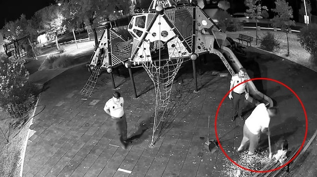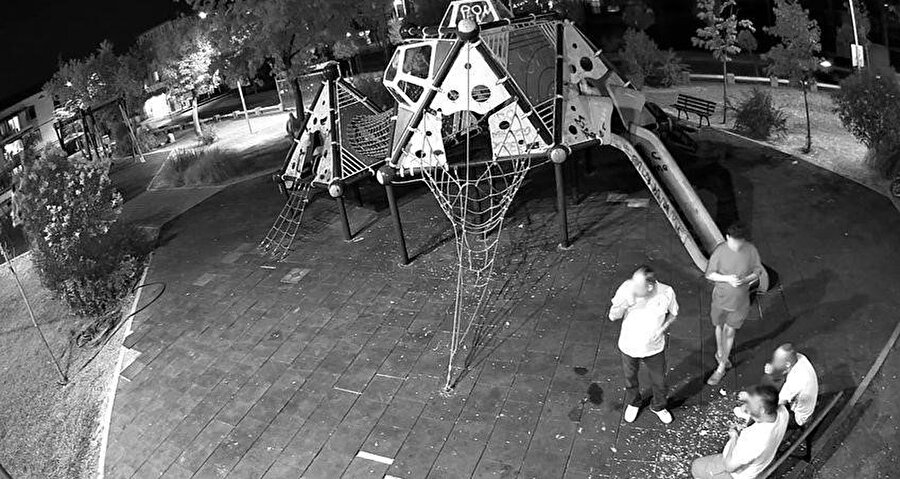 Zabıtanın gözetiminde 4 kişi, kabuklar temizledi, daha sonra parktan ayrıldı. O anlar parkın güvenlik kamerasına yansıdı.