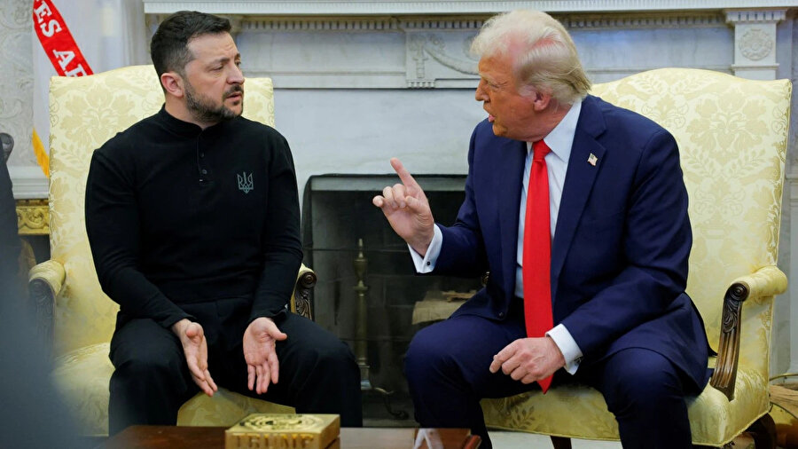 Oval Ofis'te Trump ile görüşen Zelenskiy'nin takım elbise giymemesi dikkat çekti. Gazeteciler, Ukrayna Devlet Başkanı Volodimir Zelenski'ye Oval Ofis'te neden takım elbise giymediğini sordu. Yanıtı "Savaştan sonra giyeceğim" oldu.