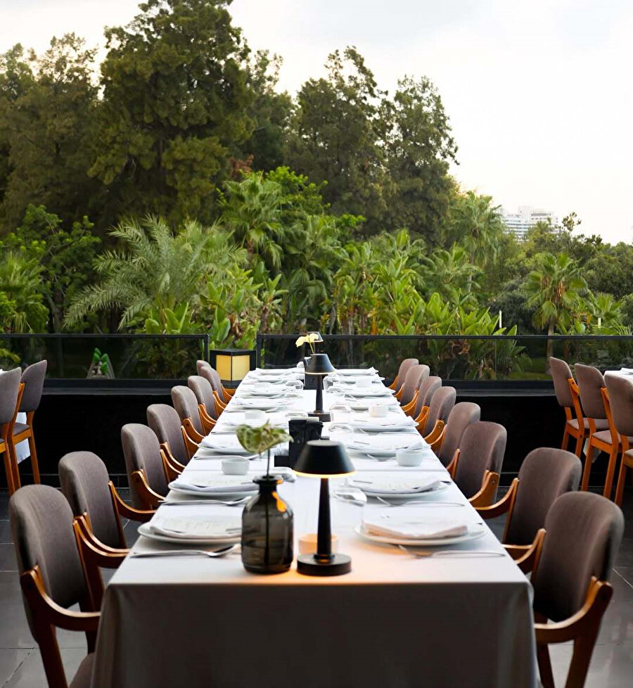 Restoran, Atatürk Kültür Parkı’nın yüksek noktasında, panoramik Antalya manzarasına karşı konumlanmış. Gün batımında altın sarısına boyanan denizi izleyerek yemek yemek, burada başlı başına bir deneyim. Açık teras yaz akşamları rüya gibi, ama rüzgarlı günlerde battaniye servisiyle misafirini düşünen bir ekip var.