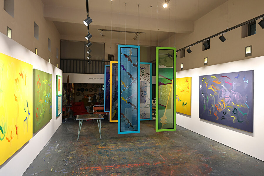 Anıt Atölye; Ata’nın doğayla, hayvanlarla ve renklerle çevrili yaşam biçimini izleyiciye açıyor. Böylece, fırçanın hareketiyle başlayan yolculuk, yaşamın kendisine karışıyor. Sanatçı, soyut ve figüratif arasında salınan “Askıda” serisinde hem boşluğun özgürlüğünü hem de fırçanın buyruğunu görünür kılıyor.