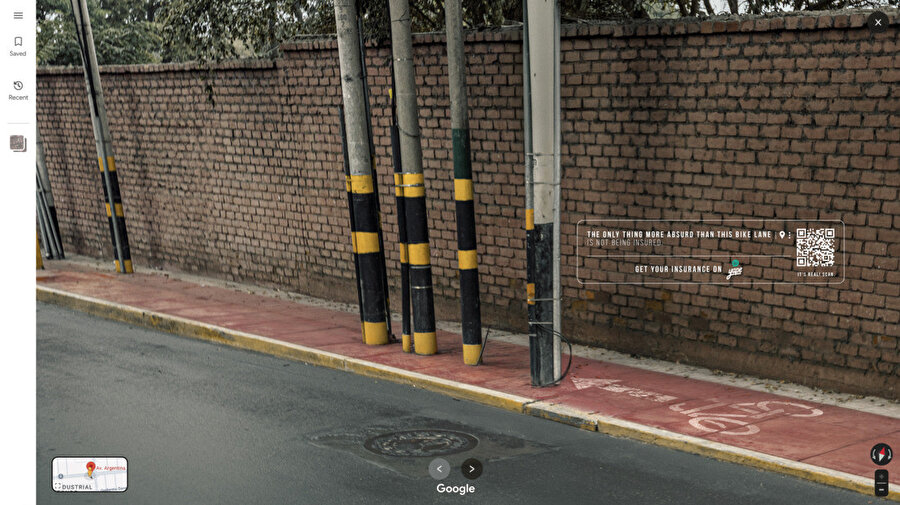 Tam da bu noktada, yerel bir finans uygulaması olan Yape, meseleyi mizahın gücüyle görünür kılmayı seçti. “Unexpected Bike Lanes” (Absürt Bisiklet Yolları) adını verdikleri kampanyada, ülkenin en saçma bisiklet yolları; duvarda biten, direğe çarpan, hatta kanalın içine yönelen şeritler, açık hava panolarına taşındı. Kampanyanın amacı, sigortasız bisiklet kullanıcılarına yönelik farkındalık yaratmak. Ancak asıl etkisi, şehir planlamasının ne kadar kırılgan bir zeminde durduğunu göstermek oldu.