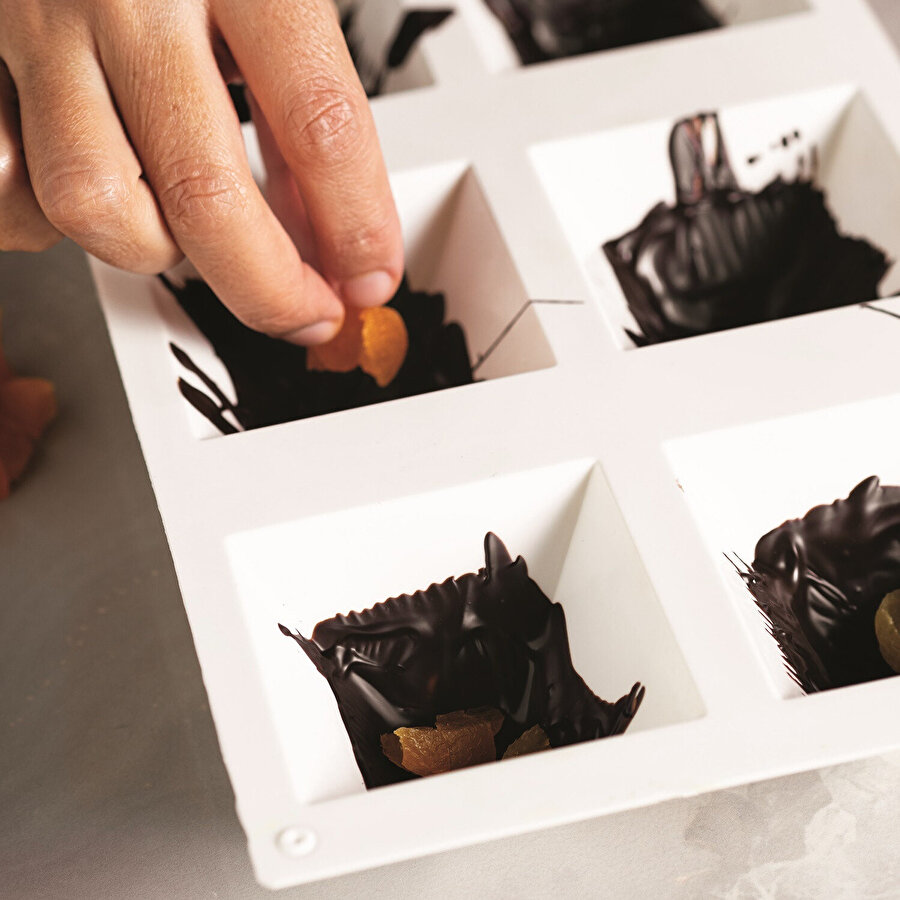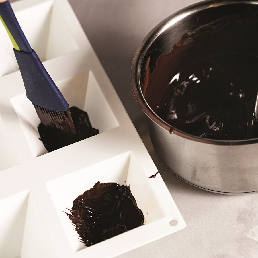Adım 1: Bitter çikolataları benmari usulü eritin ve silikon kalıbınızın tabanına fırça ile sürün.