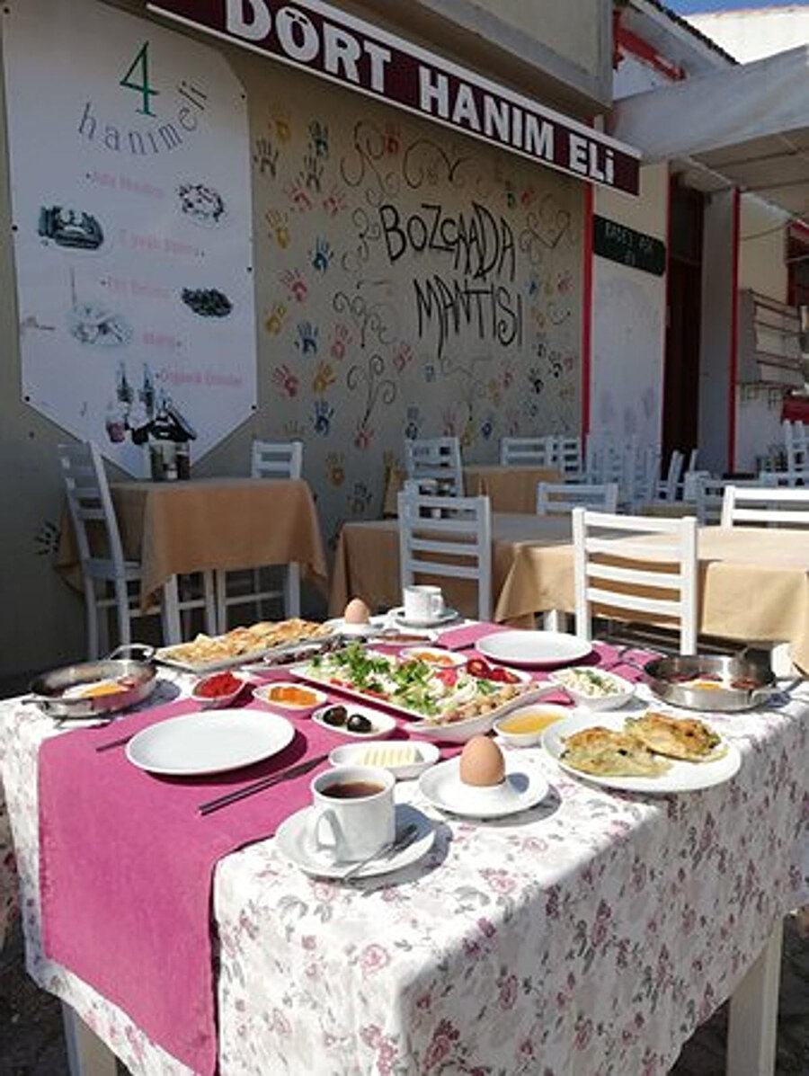 Bozcaada'da yemek nerede yenir? sorusun cevabı Dört Hanımeli. Ada lezzetlerinin yer aldığı bu mekan, samimi atmosferiyle evinizde gibi hissetmenizi sağlıyor. Eğer Bozcaada'da yemek yiyecekseniz Dört Hanımeli'nde ada mantısını ve kabak çiçeği dolmasını mutlaka denemelisiniz.