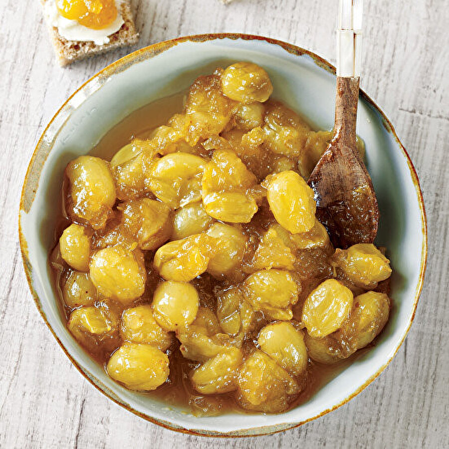 Olgun sarı üzümlerin doğal şeker tadı sayesinde şeker ilavesine gerek kalmadan bile hazırlanabilen bu reçel, hafif kahvaltıların olmazsa olmazlarından. Kahvaltı sofralarında ekmek üzerine sürülerek tüketildiği gibi dondurmaların üzerinde sos olarak da kullanılabilir.
