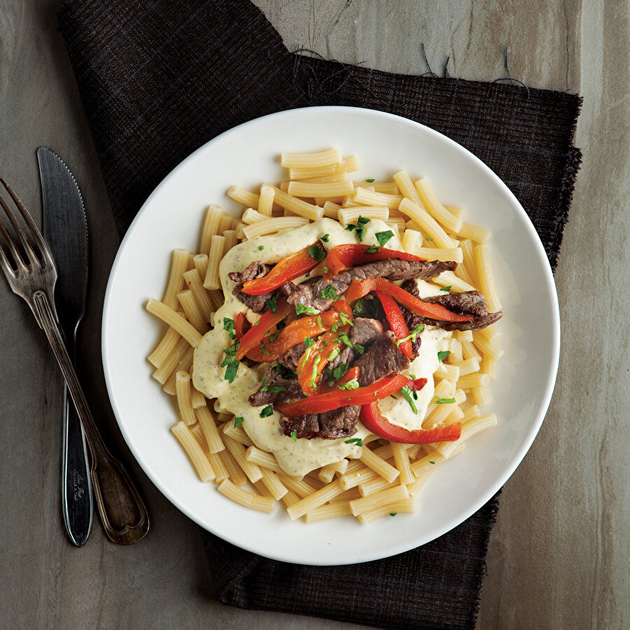 Biftek ve hardal soslu makarna gerek lezzetiyle gerek görüntüsüyle iştahınızı kabartarak yemeye doyamayacağınız bir lezzet. Makarnanızı haşlayın ve sahneyi bu enfes ikiliye bırakın!