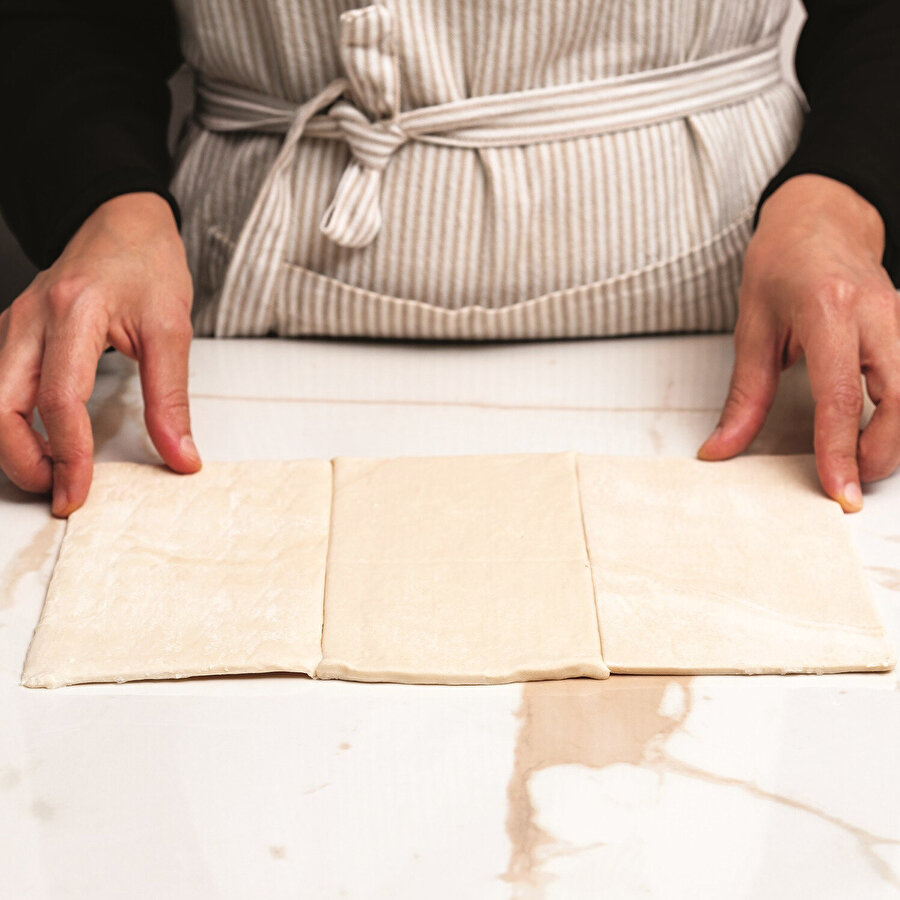 Adım 1: Milföyleri yan yana dizin, kenarlarını parmağınızla bastırıp, birbirine mühürleyin.
