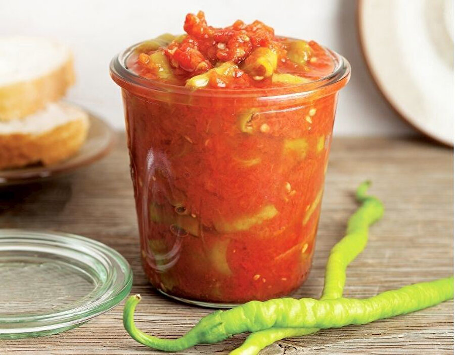 Domates ve kapya biberin kaynayıp kavanozlandığı an, çocukluk mutfaklarının kokusu gelir burnumuza. Sarımsak, sirke ve bazen acı dokunuşuyla bu sos, kahvaltının baş tacı.