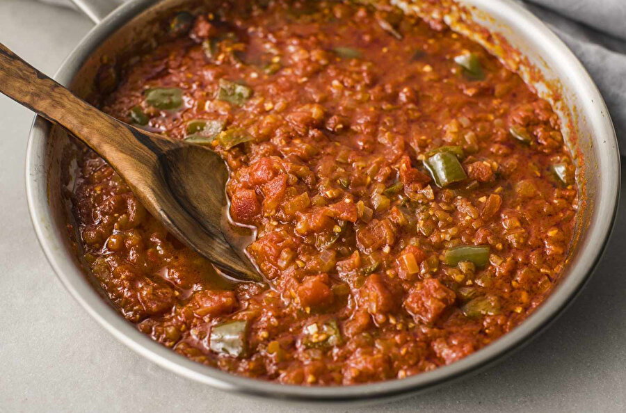 Sadece domates değil, içinde tarçın ve karanfilin sıcak aroması var. Yunan domates sosu, mutfağa gizemli bir derinlik katar.