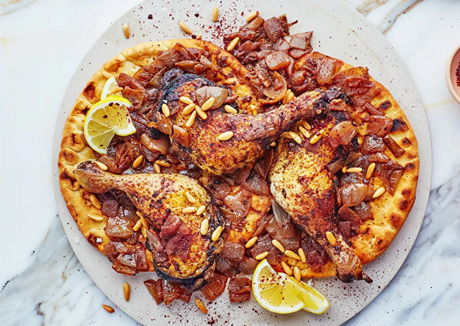 Musakhan, tavuk, soğan, zeytinyağı, baharatlar ve sumak ile pişirilen geleneksel bir Filistin yemeğidir. Bu karışım, lavaş veya pide ile servis edilir.