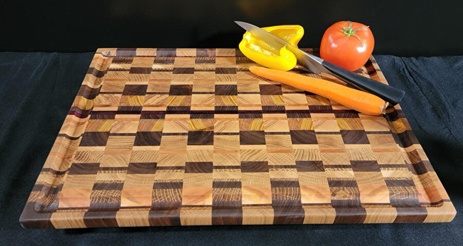 Profesyonellerin favorisi! Küçük küçük ahşap blokların bir araya gelmesiyle yapılan ve bıçağa nazik davranan modellerden biri olan end grain ahşap tahtalar, antibakteriyel özellikleriyle de sağlıklı. Kullanım açısından da uzun ömürlü olan bu kesme tahtasının ise düzenli bakımının yapılması gerekiyor. Bu sebeple temizlendikten sonra düzenli yağlanması gerekiyor. Evet kabul bir kesme tahtasına göre fazla ilgi beklese de karşılığını fazlasıyla veriyor.