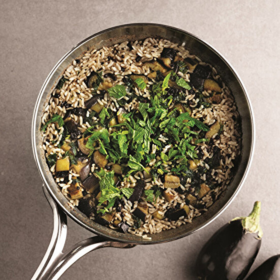 Patlıcan ve taze naneyle aromalandırılan pilavın tadını çok seveceksiniz. İftarda bir çorba ve sadece bu pilavla bile doymanız mümkün. Ya da "ben öyle doymam Lokmacığım" diyorsanız o zaman et yemeklerinizin yanına da çok güzel eşlikçi olacaktır.