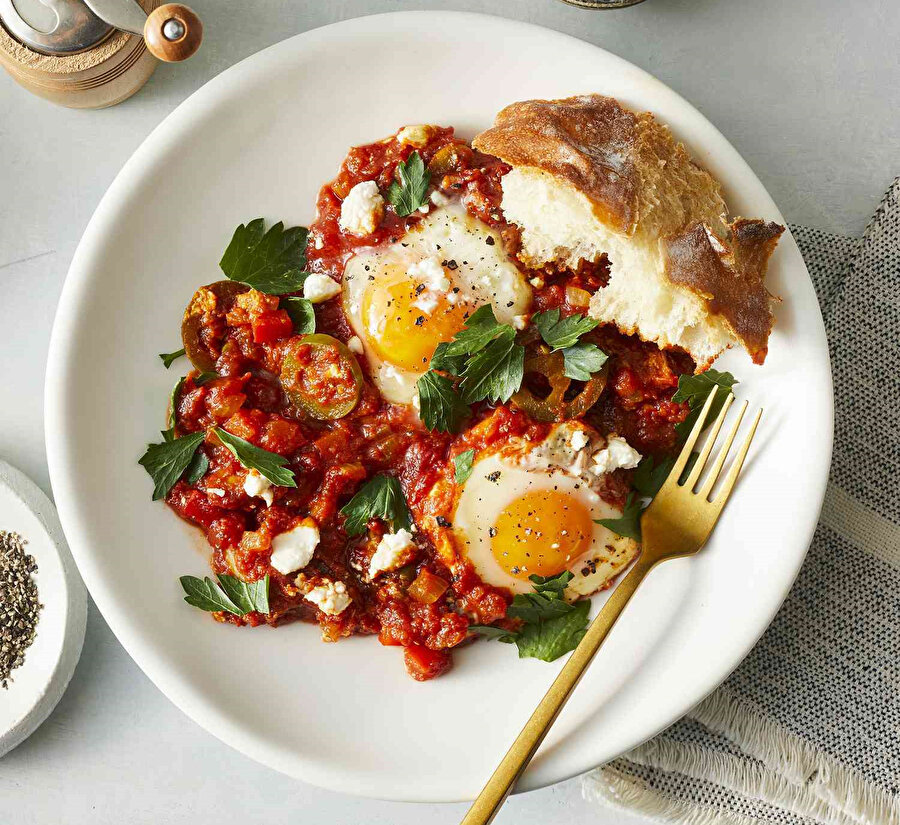 Kudüs'te sabah kahvaltılarında sıklıkla sofralarda görebileceğiniz bu yemek bizim menemenimize çok benziyor. Ancak farklı olarak yumurtalar burada bütün halde bulunuyor ve bu tarife lor peyniri de ekleniyor.